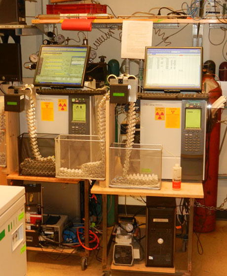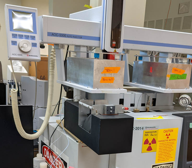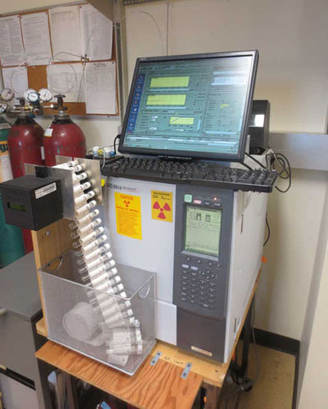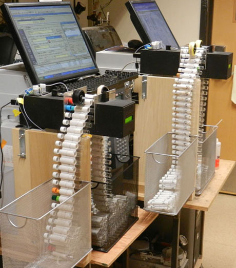 Bandolero™ is an autosampler for use with gas chromatographs. It injects samples more efficiently than other systems: less sample is used and flushing is more thorough. It can handle samples that are below ambient pressure. It does not require a technician to set up and run. Automated sampling with large flasks and gas bags is possible with the Bandolero!